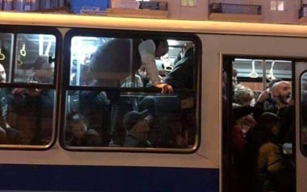 Η εικόνα αυτή, δημοσιεύτηκε και δείχνει επιβάτες στοιβαγμένους σαν «σαρδέλες» να… ίπτανται ώστε να πάνε στον προορισμό τους με λεωφορείο της γραμμής «2Κ», το οποίο εκείνη την ώρα βρισκόταν στην Εγνατία, στην περιοχή της Καμάρας.