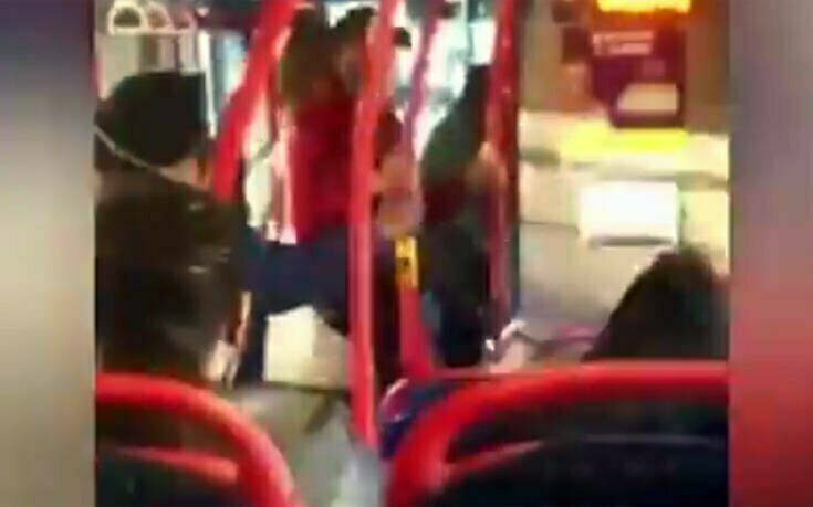 Ερασιτεχνικό βίντεο έπιασε τη στιγμή που ένας εξαγριωμένος επιβάτης λεωφορείου κλοτσά μια κοπέλα στο πρόσωπο επειδή δεν φορά μάσκα.
