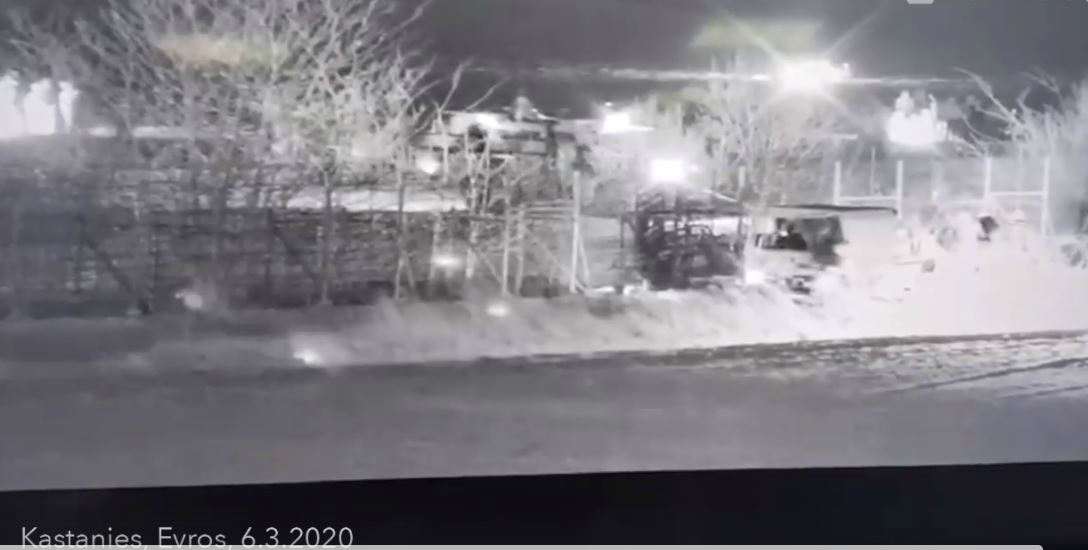 Τουρκικό θωρακισμένο όχημα συνοριακής επιτήρησης, επιχειρεί με σχοινί ή συρματόσκοινο που έχει προσδεθεί πάνω του, να τραβήξει μέρος του φράχτη στα ελληνοτουρκικά σύνορα για να τον γκρεμίσει. Το περιστατικό καταγράφηκε αργά χθες το βράδυ.