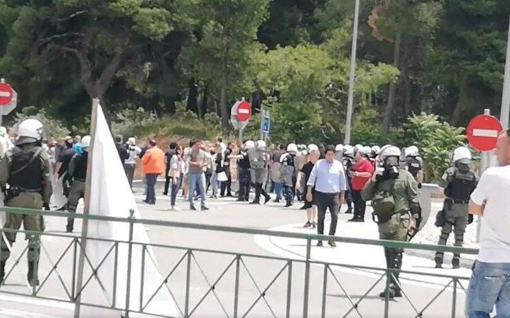 Αστυνομικές δυνάμεις που ήταν στο σημείο τους εμπόδισαν να φτάσουν στη δομή και οι κάτοικοι επέστρεψαν στην εθνική οδό και την απέκλεισαν για λίγη ώρα.