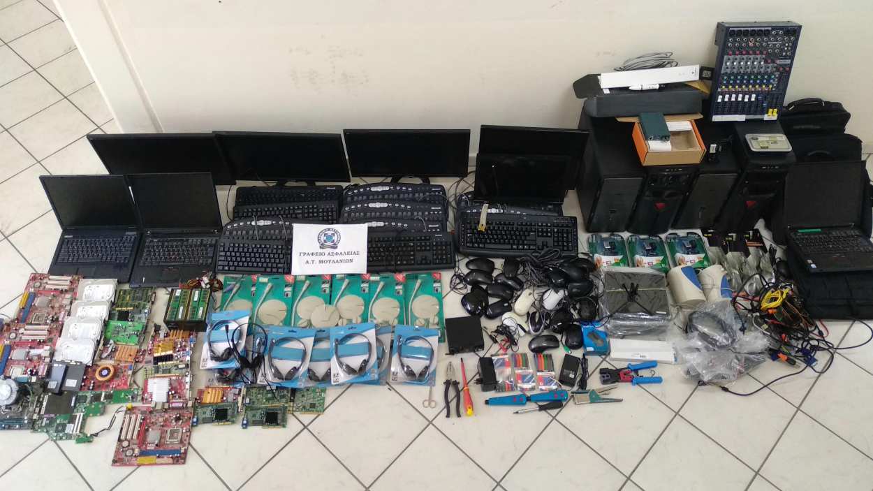 Από τους αστυνομικούς, εντοπίσθηκαν μετά από έρευνες σε οικίες τους, αλλά και κρυμμένα σε χώρους του σχολικού συγκροτήματος, ηλεκτρονικοί υπολογιστές, περιφερειακά εξαρτήματά τους και άλλες συσκευές, που είχαν αφαιρέσει και τα οποία θα αποδοθούν στους υπεύθυνους του σχολικού κτιρίου.