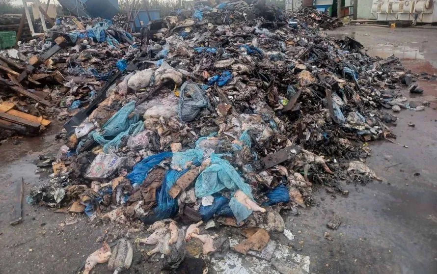 Αξίζει να σημειωθεί ότι πρόσβαση στο σημείο όπου κατέληξαν τα απόβλητα, ήταν τεχνηέντως αποκλεισμένη με χρήση μηχανήματος έργου, φορτηγού και μεταλλικών εμποδίων. Επίσης, στους στεγασμένους χώρους, υφίστανται δύο μονάδες αδρανοποίησης και μία αποτέφρωσης που δεν λειτουργούσαν κατά την αυτοψία, ενώ βρέθηκαν αποτιθέμενοι σε σωρούς, τουλάχιστον 200 τόνοι, ανάμικτων Ζωικών Υποπροϊόντων (ΖΥΠ), συσκευασμένων – μεταποιημένων τροφίμων ζωικής προέλευσης σε αποσύνθεση, αναμεμιγμένων με Απόβλητα Εκσκαφών Κατασκευών και Κατεδαφίσεων (ΑΕΚΚ) και υλικών συσκευασίας τροφίμων.