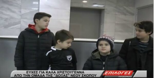 Συγκεκριμένα αντιπροσωπεία των μικρών ποδοσφαιριστών της ακαδημίας Δόξα Νέου Σκοπού, επισκέφτηκε το νοσηλευτικό ίδρυμα και τραγούδησε τα χριστουγεννιάτικα κάλαντα στη διοίκηση του νοσοκομείου στο νοσηλευτικό προσωπικό και τους ασθενείς