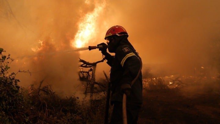 Η πυρκαγιά βρίσκεται ένα βήμα πριν από τη θάλασσα, αφού «έσπασε» τη γραμμή άμυνας των πυροσβεστικών δυνάμεων.