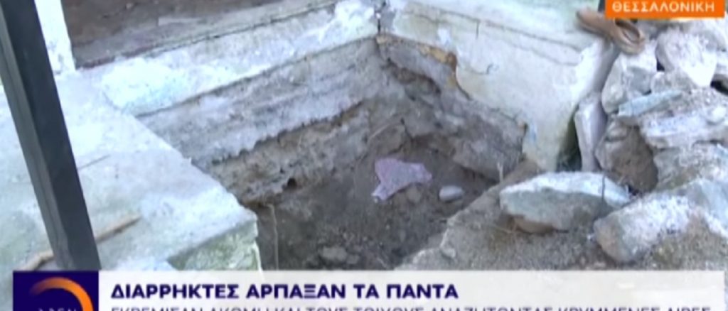 Οι ίδιοι, δε δίστασαν να σκάψουν μέχρι και στους τοίχους αλλά και έναν λάκκο βάθους μισού μέτρου στην είσοδο του σπιτιού αναζητώντας προφανώς κρυμμένες λίρες.