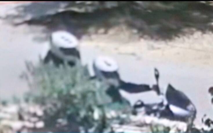Τη φωτογραφία έφερε στη δημοσιότητα η ΕΡΤ στο δελτίο ειδήσεων και φαίνονται δευτερόλεπτα μετά την εκτέλεση πάνω σε μοτοσικλέτα οι δύο δράστες να φορούν λευκά κράνη και μαύρα ρούχα.