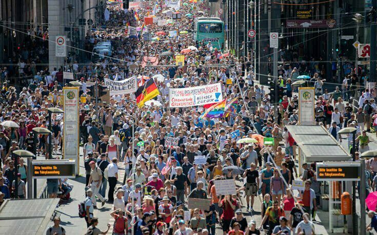 Τις προάλλες, η γερμανική αστυνομία διέλυσε μια μεγάλη διαδήλωση κατά των περιοριστικών μέτρων κατά της εξάπλωσης του κορονοϊού που είχε οργανωθεί στη Φρανκφούρτη, καθώς οι συμμετέχοντες δεν φορούσαν μάσκες και δεν τηρούσαν τις αποστάσεις.