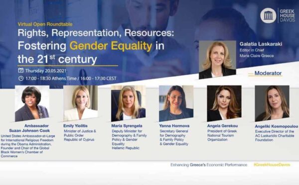 Το Greek House Davos, ο πρώτος οργανισμός προώθησης της Ελλάδος στο πλαίσιο του Παγκοσμίου Οικονομικού Φόρουμ, διοργανώνει μια δημόσια διαδικτυακή συζήτηση με θέμα την ενίσχυση της ισότητας των φύλων στον 21ο αιώνα, την Πέμπτη 20 Μαΐου, στις 17:00.