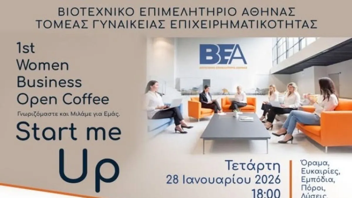 Μια νέα πρωτοβουλία για τη γυναικεία επιχειρηματικότητα εγκαινιάζει το Βιοτεχνικό Επιμελητήριο Αθήνας (ΒΕΑ), καθιερώνοντας τις συναντήσεις Women Business Open Coffee – «Γνωριζόμαστε και Μιλάμε για Εμάς».