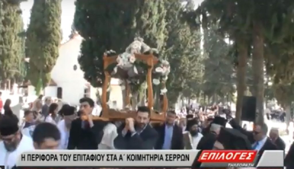 Υπό τους πένθιμους ήχους της φιλαρμονικής του δήμου Σερρών, ο κόσμος συνοδεύει τον επιτάφιο, στο α’ νεκροταφείο Σερρών. Εκατοντάδες κόσμου, βρέθηκαν και φέτος εκεί για την περιφορά του επιταφίου.