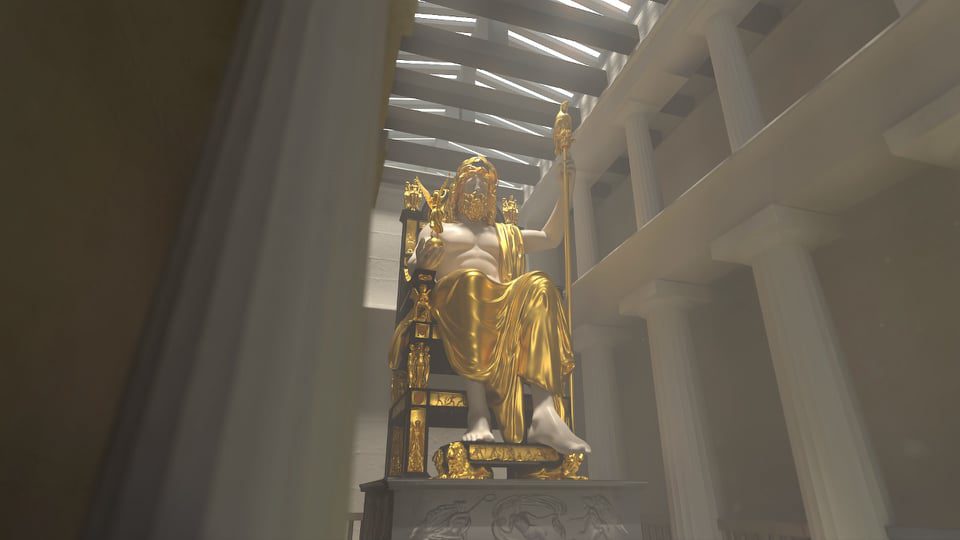 Συνολικά, το έργο αποκαθιστά ψηφιακά 27 μνημεία στο χώρο, μεταξύ αυτών, το Στάδιο, τους ναούς του Δία και της Ήρας, το εργαστήριο του Φειδία. Στην τρισδιάστατη εμπειρία, αυτά τα κτίρια ανασυντίθενται με ρεαλιστική λεπτομέρεια, με επίπονη έρευνα από διεπιστημονική ομάδα του Υπουργείου Πολιτισμού και Αθλητισμού, για να είναι όσο το δυνατόν πιο πιστά στην αρχική τους μορφή. Αυτό περιλαμβάνει ιστορικά χρονοδιαγράμματα των αλλαγών του χώρου, με την πάροδο του χρόνου και απεικονίσεις τεχνουργημάτων από κάθε περίοδο.