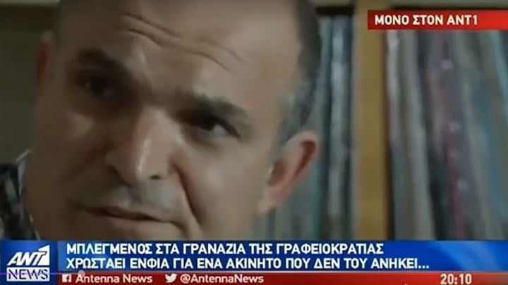 Μπλεγμένος στα γρανάζια της ελληνικής γραφειοκρατίας έχει βρεθεί ένας 55χρονος από τη Θεσσαλονίκη. Λόγω λάθους στον ΑΦΜ του νεκρού πατέρα του, έχει βρεθεί να χρωστά ΕΝΦΙΑ για ένα ακίνητο που βρίσκεται στην Αθήνα και το οποίο δεν τους ανήκει.