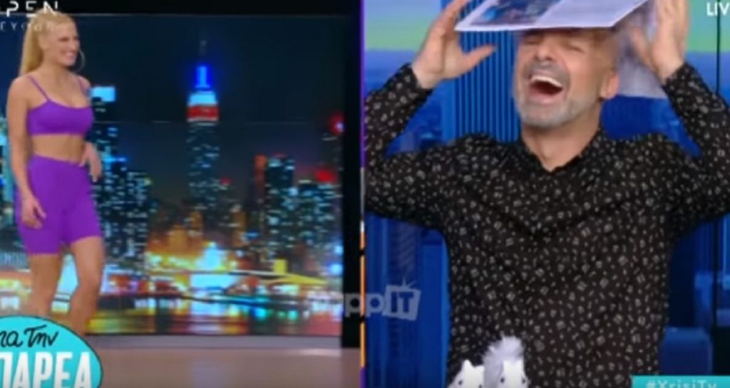 Σαν να μην έφτανε αυτό, η ίδια η Ιωάννα Τούνη μπήκε στο στούντιο του «Για την παρέα» φορώντας ένα κοντό μωβ κολάν και μπουστάκι και κόκκινα τακούνια. Η όμορφη ξανθιά άφησε λίγα στη φαντασία μας… «Στον Δεκέμβρη κοντοστάθηκα, αλλά και τώρα δεν ξέρω, ο Μάρτιος ο ζωντανός κάπως με φτιάχνει», σχολίασε ο Νίκος Μουτσινάς.