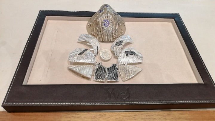 Φτιαγμένη από χρυσό 18 καρατίων και διακοσμημένη με 3.600 μαύρα και λευκά διαμάντια, η μάσκα θα εξοπλιστεί επιπλέον με ένα φίλτρο N99 προκειμένου να προσφέρει υψηλό επίπεδο προστασίας, δήλωσε ο Ισαάκ Λεβί, ο ιδιοκτήτης του κοσμηματοπωλείου Yvel.