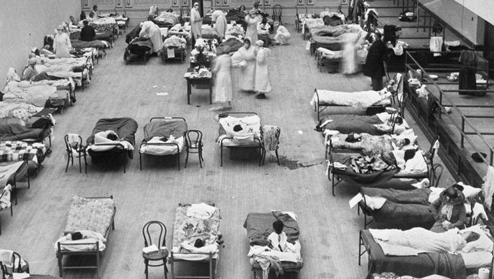 Και η καλύτερη για αυτόν τον δολοφόνο του μικρόκοσμου ήρθε πριν από έναν αιώνα. Το 1918, πριν καλά-καλά φύγει ο καπνός από τα πεδία των μαχών, κάπου στην Ανατολική Ασία έπεφταν οι πρώτοι νεκροί από την γρίπη. Μέσα σε ελάχιστο χρονικό διάστημα αναφέρθηκε το πρώτο κρούσμα στην Ευρώπη. Ήταν ένα Άγγλος στρατιώτης που υπηρετούσε σε σύνταγμα που βρισκόταν στην Γαλλία. Όσο ο καιρός περνούσε τόσο μεγάλωνε ο αριθμός των θυμάτων. Και όσο το στράτευμα μετακινούνταν, τόσο εξαπλωνόταν ο ιός, χωρίς ακόμη να γνωρίζει κανείς τι ακριβώς συμβαίνει…