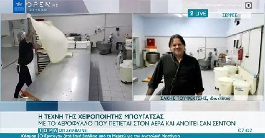 Για το αερόφυλλο της μπουγάτσας που πετιέται στον αέρα και ανοίγει σαν σεντόνι μίλησε ο ιδιοκτήτης της επιχείρησης στις Σέρρες Σάκης Τουφεκτσής.