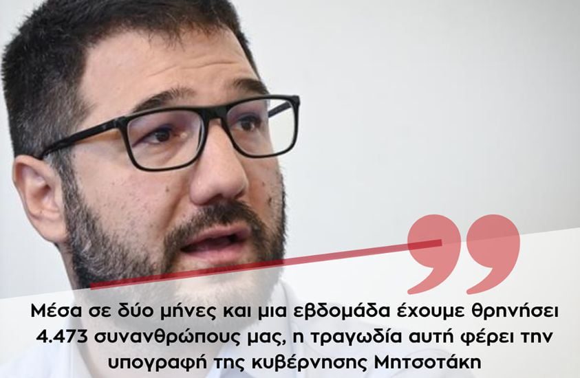 “Μέσα σε δύο μήνες και μια εβδομάδα έχουμε θρηνήσει 4.473 συνανθρώπους μας, η τραγωδία αυτή φέρει την υπογραφή της κυβέρνησης Μητσοτάκη”