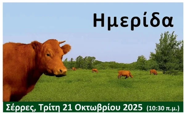 Ο Πανσερραϊκός κτηνοτροφικός σύλλογος διοργανώνει ημερίδα την Τρίτη 21 Οκτωβρίου, και ώρα 10.30 με θέμα <<Γενετικοί Πόροι στην Κτηνοτροφία – Πρόγραμμα 10.2.1 του Υπουργείου Αγροτικής Ανάπτυξης και Τροφίμων – Ελληνική Κόκκινη Φυλή : Απολογισμός Προοπτικές για τους Γενετικούς Πόρους >>, στο Ξενοδοχείο Acropol (5 χλμ. Σερρών – Θεσσαλονίκης)