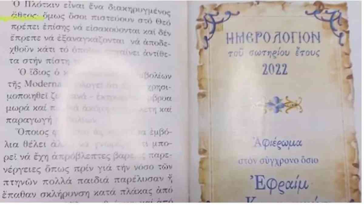 Το ημερολόγιο τσέπης, που κυκλοφόρησε αυτές τις ημέρες, σύμφωνα με την εφημερίδα «Ταχυδρόμος», περιλαμβάνει κείμενο που αποτρέπει τους πιστούς να εμβολιαστούν, με απόψεις με απαράδεκτο και αντιεπιστημονικό περιεχόμενο.