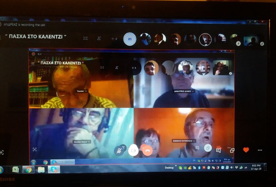 Αφού έγινε ένα πρώτο πείραμα με τα Κάλαντα του Λαζάρου την προηγούμενη εβδομάδα, το βράδυ της Μ. Παρασκευής, την ώρα που υπό κανονικές συνθήκες θα βρίσκονταν στην εκκλησία, το ραντεβού δόθηκε στο skype. Μετά από σύντομες οδηγίες για το πώς θα εξελιχθεί η διαδικασία, Καλεντζίτες από την Αθήνα, τα Γιάννενα, αλλά και κάποιοι που βρίσκονταν στο χωριό, ξεκίνησαν να ψέλνουν.