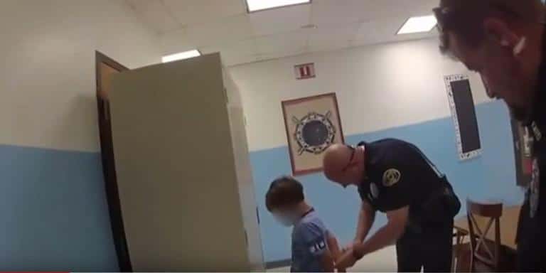 Σοκ προκαλεί στην αμερικανική κοινή γνώμη ένα βίντεο που καταγράφει τη στιγμή που αστυνομικοί προσπαθούν να φορέσουν χειροπέδες σ’ ένα οκτάχρονο αγόρι που κλαίει μέσα στο δημοτικό σχολείο του και του λένε ότι θα πάει φυλακή.