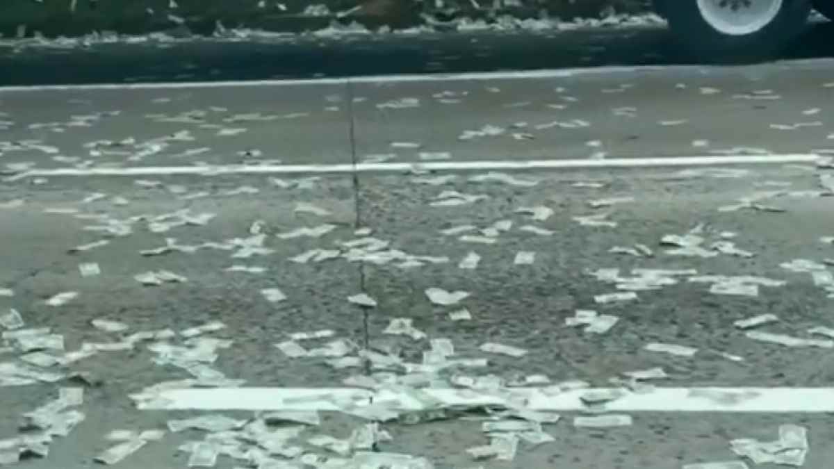 Βίντεο που αναρτήθηκαν σε μέσα κοινωνικής δικτύωσης δείχνουν οδηγούς να σταματούν τα οχήματά τους στην μέση του δρόμου και στη λωρίδα έκτακτης ανάγκης και να κατεβαίνουν τρέχοντας να μαζέψουν με τις χούφτες δολάρια. Κάποιοι τα πετάγαν στον αέρα σαν κομφετί.
