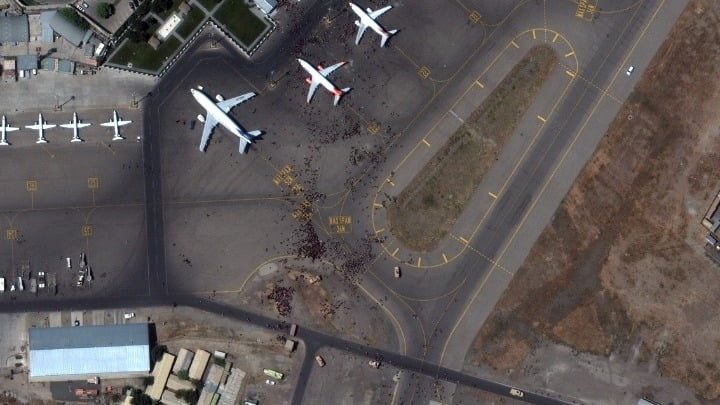 Σε ανακοίνωσή της, η Πολεμική Αεροπορία αναφέρει ότι το αεροπλάνο προσγειώθηκε στο αεροδρόμιο της Καμπούλ τη Δευτέρα και το περικύκλωσαν εκατοντάδες Αφγανοί πολίτες.