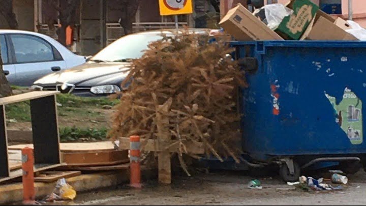 Καναπέδες, είδη υγιεινής, πόρτες, μπετά αλλά και …χριστουγεννιάτικα δέντρα, τα οποία ξεστολίστηκαν με πολύ μεγάλη καθυστέρηση, εναποθέτουν τις τελευταίες ημέρες δίπλα στους κάδους των απορριμμάτων οι Θεσσαλονικείς που «μένουν σπίτι»,