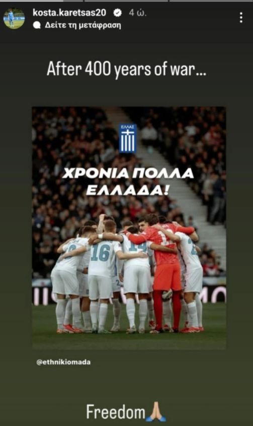 Ο Κωνσταντίνος Καρέτσας με δύο story στο Instagram, ευχήθηκε στους Έλληνες “Χρόνια Πολλά” για την εθνική μας επέτειο.