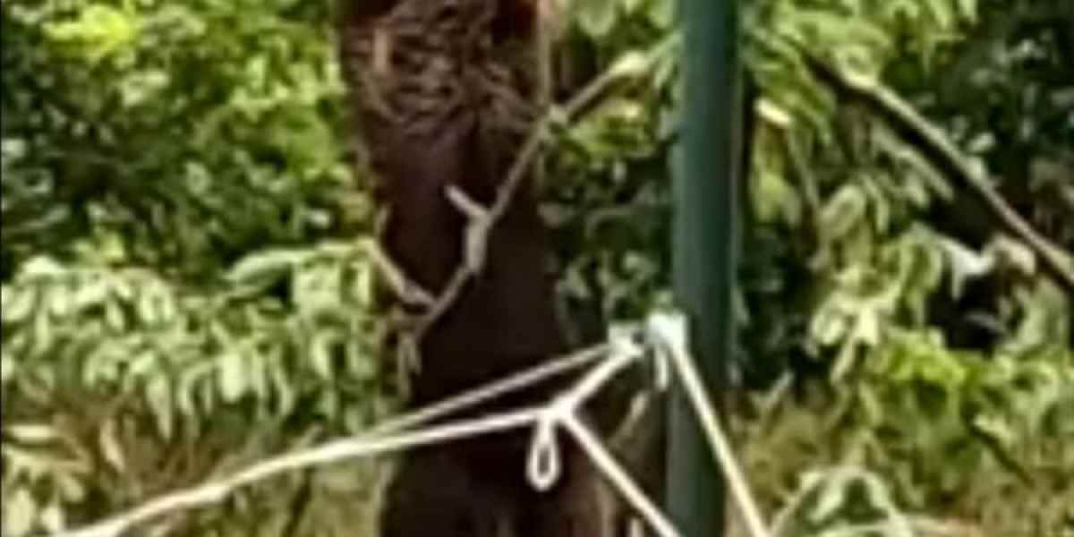 Το τεράστιο ζώο σκαρφαλώνει στο δέντρο και κάτοικος της περιοχής που βρισκόταν κοντά στο σημείο, τράβηξε βίντεο με την αρκούδα να γίνεται… viral.