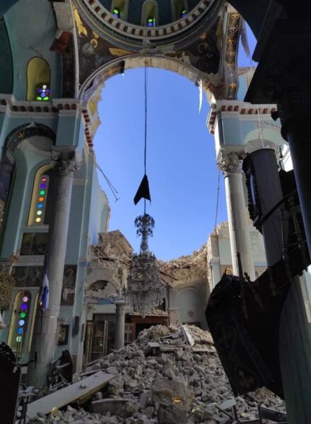 Μεγάλο τμήμα της Εκκλησίας της Κοίμησης της Θεοτόκου στο Καρλόβασι κατέρρευσε λόγω του ισχυρού σεισμού. Πρόκειται για έναν από τους μεγαλύτερους ναούς των Βαλκανίων.