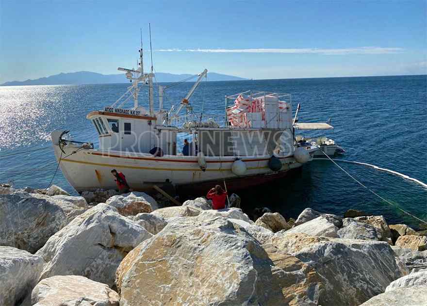 Αλιευτικό σκάφος έπεσε στα βράχια χθες το βράδυ στην Καβάλα
