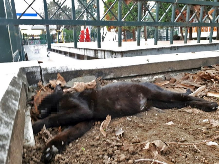 Αυτό μαρτυράει η εικόνα μιας νεκρής γάτας σε παρτέρι στην πλατεία Ελευθερίας στην πόλη της Καβάλας, με «φόντο» τον Χριστουγεννιάτικο διάκοσμο της πλατείας.