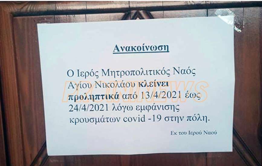Στην ανακοίνωση αναφέρετε ότι ο λόγος είναι τα κρούσματα στην πόλη, πληροφορίες όμως από το proininews.gr, αναφέρουν ότι κάποιοι από τους θετικούς στον κορονοϊό ήταν συχνά στην εκκλησία το προηγούμενο διάστημα