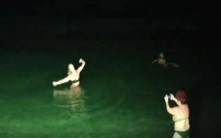 Ωστόσο, για κάποιους αυτά τα μέτρα και οι περιορισμοί δεν ήταν δυνατό να ισχύσουν και αναφερόμαστε σε λουόμενους που εκείνη την ώρα βρίσκονταν στην παραλία της Ραψάνης για βραδινό μπάνιο, αφού έχουν τη δυνατότητα να χορεύουν ζεϊμπέκικο, ακόμα και μέσα στη… θάλασσα