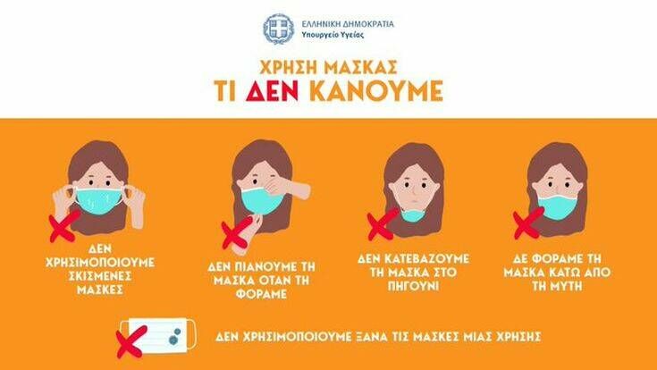 Το υπουργείο Υγείας, και ο υπουργός Βασίλης Κικίλιας, ανάρτησαν ένα σχέδιο στο οποίο απεικονίζονται οι 5 τρόποι με τους οποίους δεν πρέπει να χρησιμοποιούνται οι μάσκες.