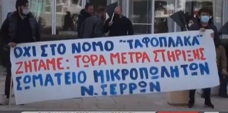 Με μαύρες σημαίες στα χέρια συμμετείχαν στην πανελλαδική απεργία ενάντια στο νομοσχέδιο που προωθείται για τη λειτουργία των λαϊκών αγορών παραγωγοί και επαγγελματίες στη λαϊκή αγορά των Σερρών