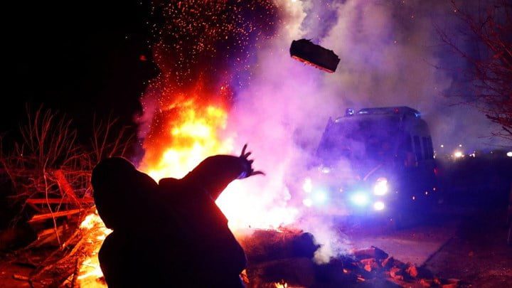 Αργότερα, όμως, την ίδια ημέρα, κάτοικοι της περιοχής συγκεντρώθηκαν έξω από το κέντρο υγείας της πόλης και επιτέθηκαν σε ένα από τα πούλμαν, ρίχνοντας πέτρες. Σε βίντεο καταγράφονται οι ντόπιοι κάτοικοι να εκτοξεύουν πέτρες κατά των λεωφορείων, να καίνε λάστιχα και να συγκρούονται με την αστυνομία.