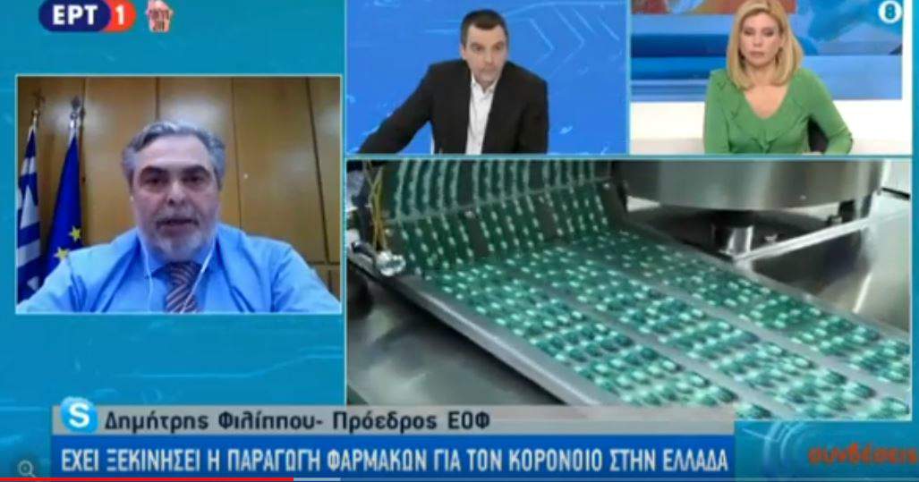 Ο πρόεδρος του ΕΟΦ ξεκαθάρισε ότι οι πέντε τόνοι χλωροκίνης έχουν έλθει στην Ελλάδα και ήδη έχει ξεκινήσει η παραγωγή ενός φαρμάκου το οποίο προϋπήρχε και χρησιμοποιείτο σε ασθενείς με ελονοσία αλλά έχει παρατηρηθεί ότι βοηθάει και στους ασθενείς με κορονοϊό.