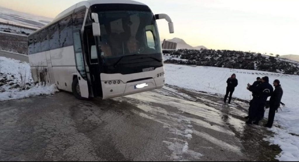 Ευτυχώς, το λεωφορείο σταμάτησε “σε κομμάτι πάγου” όπως σημειώνουν αυτόπτες μάρτυρες στο onlarissa.gr.