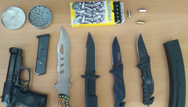 Ο 44χρονος εντοπίστηκε από αστυνομικούς της Ομάδας ΔΙ.ΑΣ. να κινείται στη Λιβαδειά, υποβλήθηκε σε έλεγχο και στην κατοχή του ένα πιστόλι κρότου– αερίου replica με γεμιστήρα και 41 αβολίδωτα φυσίγγια, τέσσερα μαχαίρια, πλήθος μεταλλικά σφαιρίδια αεροβόλου όπλου, ένας γεμιστήρας αεροβόλου όπλου και ο επίμαχος ασύρματος.