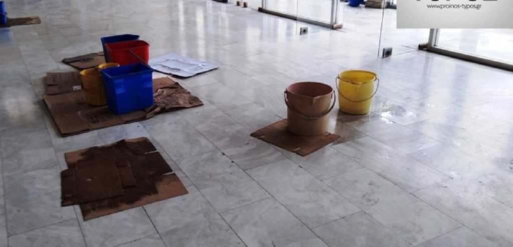 Υπό βροχή δικάζονται οι υποθέσεις στο Δικαστικό Μέγαρο Δράμας, λόγω προβλημάτων που αντιμετωπίζει το κτήριο.