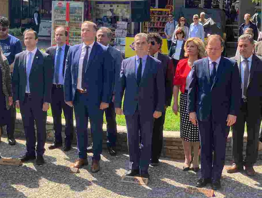 Μεταξύ άλλων, στεφάνια κατέθεσαν: ως εκπρόσωπος της κυβέρνησης, ο Υπουργός Υποδομών και Μεταφορών, Κώστας Καραμανλής, ως εκπρόσωπος της Βουλής των Ελλήνων, ο βουλευτής Σερρών του ΣΥ.ΡΙΖ.Α., Λευτέρης Αβραμάκης, ο Αντιπεριφερειάρχης Σερρών, Παναγιώτης Σπυρόπουλος, ο Διοικητής του 10ου Συντάγματος Πεζικού, Χρήστος Σγουρομάλλης, ο Δήμαρχος Σερρών, Αλέξανδρος Χρυσάφης, ο Αστυνομικός Διευθυντής Σερρών, Δημήτρης Μικρός, και για την Πυροσβεστική Υπηρεσία Σερρών ο Αντιπύραρχος, Νικόλαος Παπαδόπουλος.