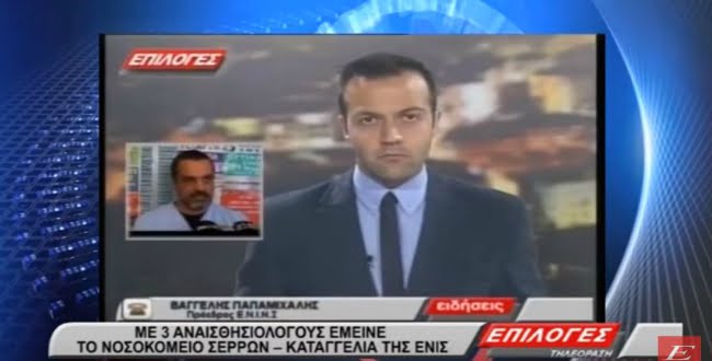 Η λειτουργία του νοσοκομείου Σερρών δεν είναι απλά επικίνδυνη αλλά αδύνατη, καταγγέλλει η Ένωση Νοσοκομειακών Γιατρών Σερρών, αφού μένει με 3 αναισθησιολόγους.