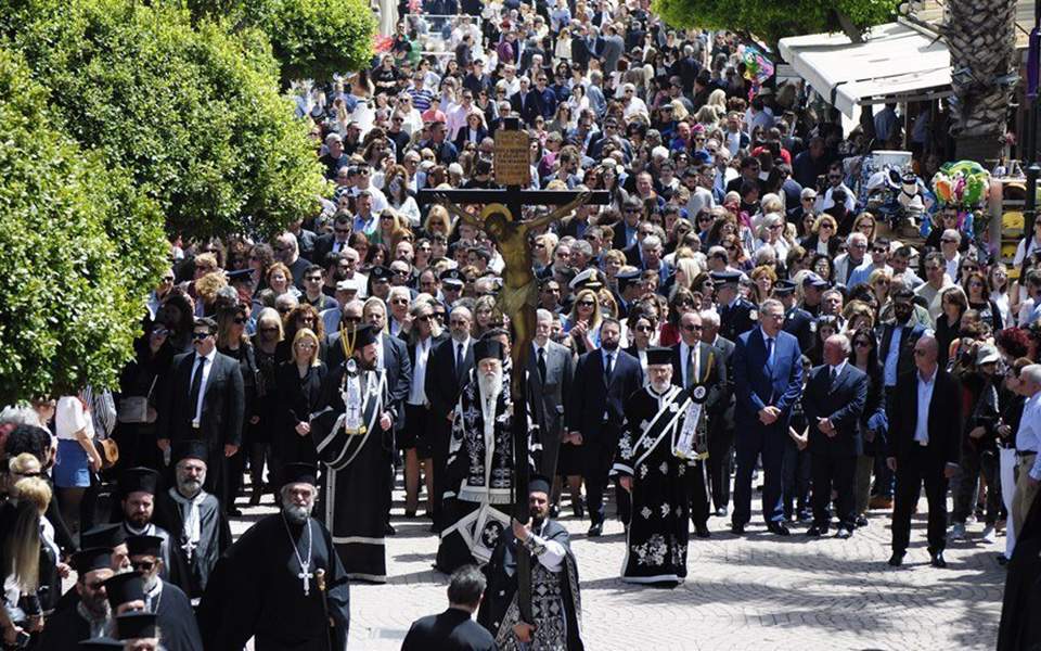 Ξεκίνησε η μεγαλειώδης περιφορά των επιταφίων της Κέρκυρας. Η πομπή που συνοδεύεται από χιλιάδες επισκέπτες που βρίσκονται ήδη στο νησί, θα διαρκέσει μέχρι τα μεσάνυχτα.