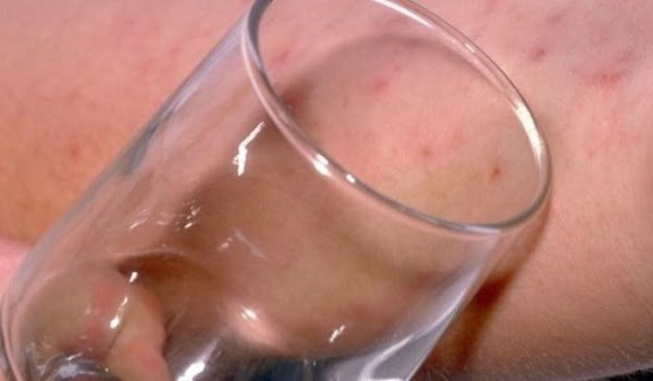 Αυτού του τύπου το εξάνθημα στο δέρμα δεν “υποχωρεί” όταν του ασκείτε πίεση. Γι’ αυτό είναι σημαντικό να ξέρετε πώς γίνεται το τεστ με το ποτήρι.