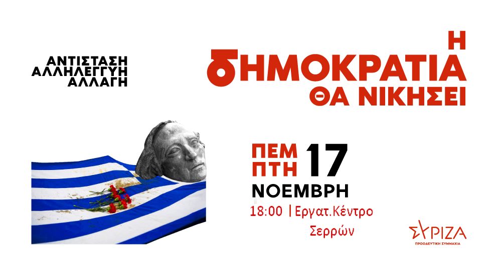 ΠΕΜΠΤΗ 17 ΝΟΕΜΒΡΗ, ΩΡΑ 6μμ, ΣΤΟ ΕΡΓΑΤΙΚΟ ΚΕΝΤΡΟ ΣΕΡΡΩΝ