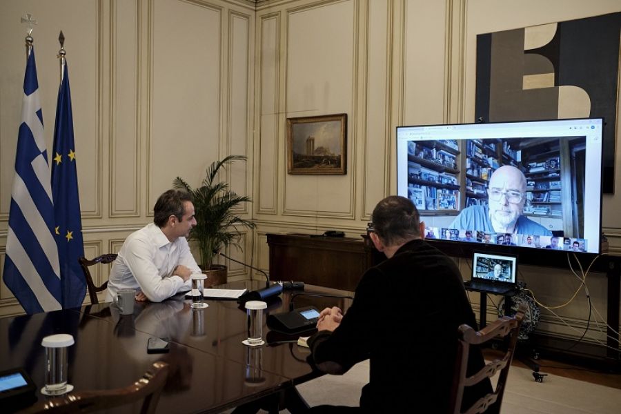 Τηλεδιάσκεψη με τον Πρόεδρο του Διοικητικού Συμβουλίου του κοινωφελούς Ιδρύματος Σταύρος Νιάρχος (ΙΣΝ) Ανδρέα Δρακόπουλο και τη Διεύθυνση Διαχείρισης Δωρεών του Ιδρύματος είχε το απόγευμα της Παρασκευής ο Πρωθυπουργός Κυριάκος Μητσοτάκης.