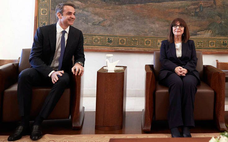 «Η αισιοδοξία είναι γένους θηλυκού», είπε ο πρωθυπουργός Κυριάκος Μητσοτάκης απευθυνόμενος στη νέα Πρόεδρο της Δημοκρατίας Κατερίνα Σακελλαροπούλου και της ευχήθηκε να έχει μια παραγωγική, γεμάτη από υγεία, θητεία.