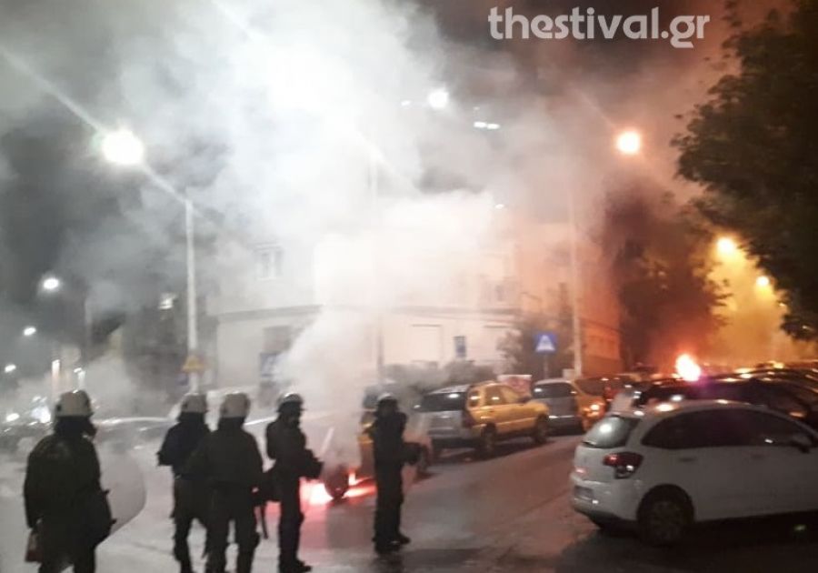 Λίγο πριν την ολοκλήρωση και της δεύτερης πορείας για την 46η επέτειο από την εξέγερση των φοιτητών στο Πολυτεχνείο, άγνωστοι έριξαν μολότοφ στην οδό Αρριανού, στο κέντρο της Θεσσαλονίκης.